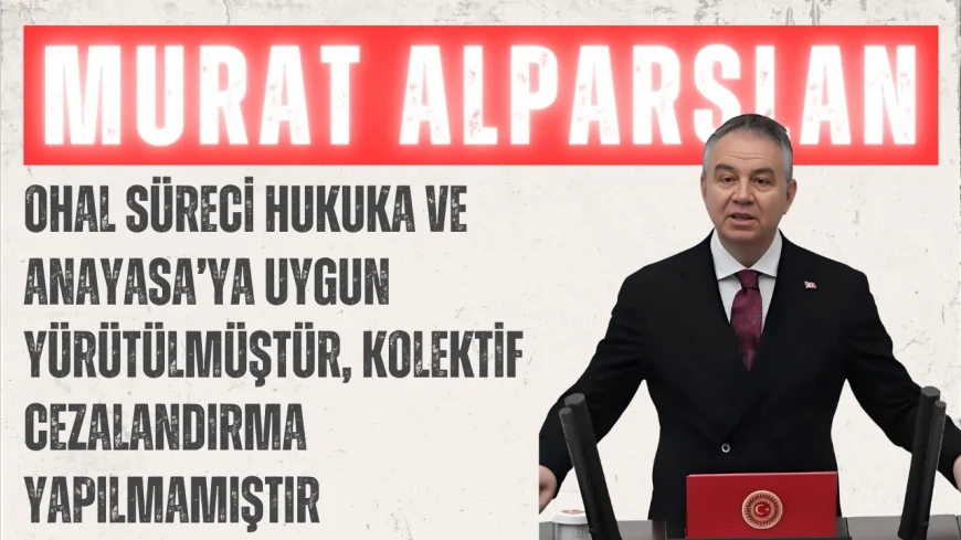Devletin darbe girişiminin ardından aldığı tedbirlerin Anayasa’nın 121 ve 122’nci maddeleri ile 2935 sayılı Olağanüstü Hal Kanunu’na dayandığını belirten Alparslan, “KHK’lar Meclis onayıyla yasalaştı, OHAL Komisyonu ve yargı denetimine açıldı. Bu süreç bir keyfiyet değil, zorunluluktu” ifadelerini kullandı.