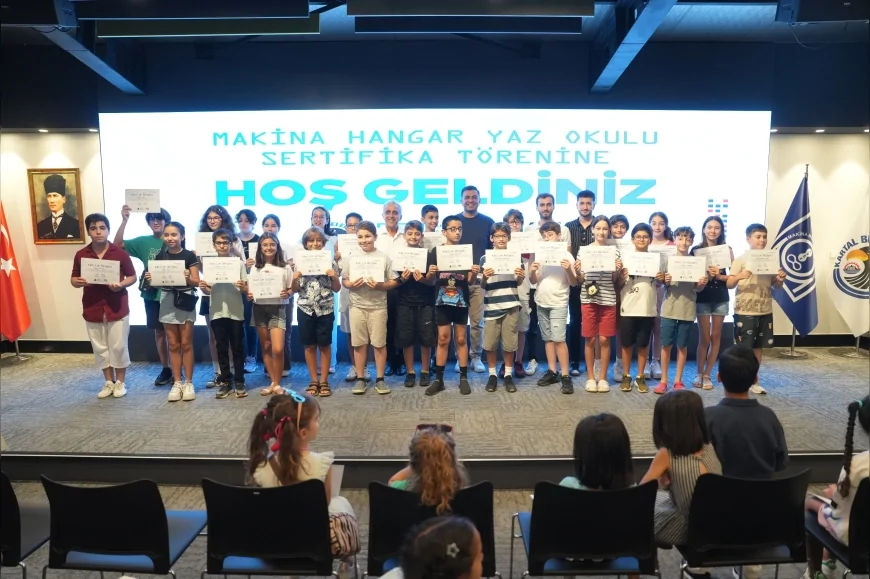 Kartal Bilim Mühendislik ve Teknoloji Merkezi’nin ev sahipliği yaptığı Makina Hangar Yaz Okulu, dört haftalık eğitimin ardından sertifika töreniyle tamamlandı. İlkokul, ortaokul ve lise düzeyinde 6 ayrı grupta toplam 124 öğrenci, “robotik kodlama”, “algoritma geliştirme” ve “proje üretimi” gibi alanlarda hem teorik hem de uygulamalı dersler gördü.