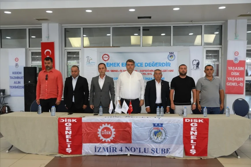Seferihisar Belediyesi ile DİSK Genel-İş Sendikası 4 No’lu Şube arasında toplu iş sözleşmesi imzalandı. Belediye çalışanlarına yönelik düzenlemelerle maaş ve sosyal haklarda iyileştirmeler yapıldı.