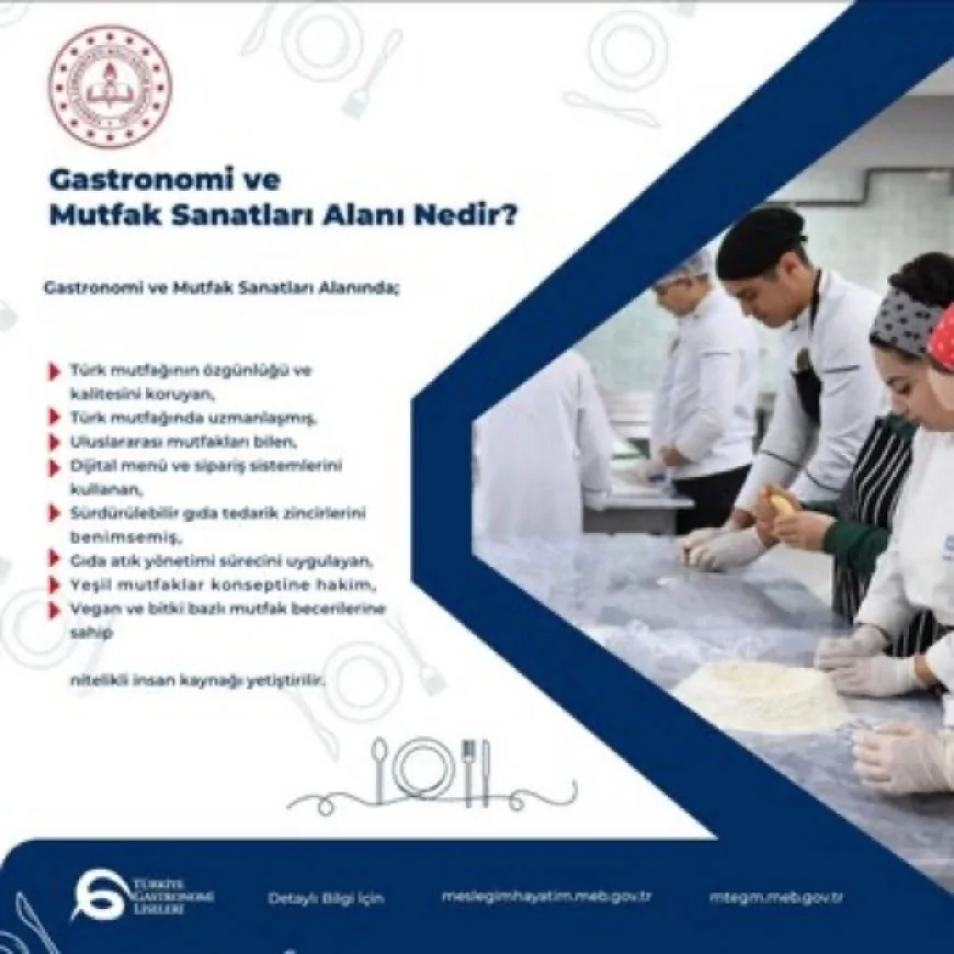 Millî Eğitim Bakanlığı tarafından hayata geçirilen “Türkiye Gastronomi Liseleri Projesi” kapsamında, Gastronomi ve Mutfak Sanatları alanında yetenek sınavıyla öğrenci alımı başlıyor.